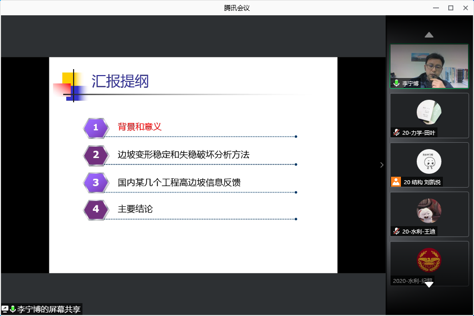 承办的2021年第18期(总第1007期)“稷下风”研究生学术讲坛在线上腾讯会议成功举办。本次讲坛有幸邀请到了李宁博高级工程师,高级工程师李宁博的汇报题目是《高边坡失稳分析与探讨》。此次讲坛由吃瓜网