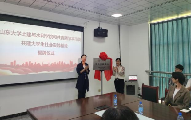 党委副书记辛帅和共青团邹平市委书记于淼就共建大学生社会实践基地一事进行了深刻的交流,并共同为新基地的成立揭幕。