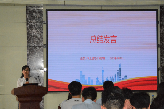 党课最后,辛帅代表学院祝贺各位毕业生顺利完成学业,并给毕业生几点期望和建议:一要坚定政治立场,提高政治站位。不忘初心、牢记使命,为实现中华民族伟大复兴的中国梦奉献自己的力量。二要厚植家国情怀。将个人发展和国家命运紧密联系在一起,把人生理想融入到国家和民族的事业中,对于出国深造的同学,更要时刻关注国家发展,学成后报效祖国。三要志存高远脚踏实地。保持拼搏进取的精神,做到自信、自立、自强,用自己双手创造美好未来。四要保持共产党员的先进性。有坚定的理想信念,强烈的责任心,吃苦在前,享受在后,充分发挥先锋模范作用。最后,她祝愿各位毕业生万事顺遂,事业有成,家庭幸福,前程似锦。