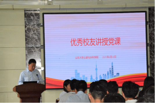 杰出校友张超为毕业生讲授党课,学院党委副书记辛帅为本次党课做总结发言。研究生辅导员姜海鹰主持,全部毕业研究生党员参加了此次党课学习。