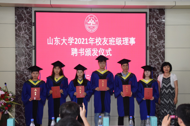 传承山大文化,汇集磅礴力量。为加深毕业生与母校的联系、赓续同学与老师的情谊,聘选2021年校友班级理事,典礼进行2021年校友班级理事聘书颁发仪式。胡岩为班级理事颁发聘书并合影留念。