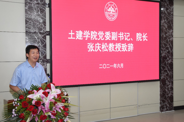 早上九点仪式正式开始,张庆松代表学院向圆满完成学业的2021届全体毕业生表示最热烈的祝贺,他在致辞中表达了对毕业生的殷切期待和深沉嘱托,鼓励毕业生们厚植家国情怀,用使命担当撑起厚重人生;永葆激情和热情,做拼搏进取的时代新青年;学无止境,勇于创新,在未知中探索,在创新中发展;艰难困苦玉汝于成,直面挫折和挑战,于逆境中成长。他告诉毕业生们:学院和老师永远是同学们坚实的后盾,随时欢迎同学们回家!