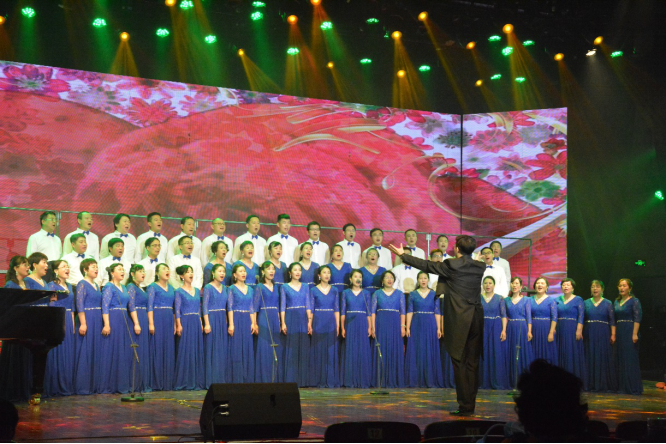 “花篮的花儿香,听我来唱一唱,唱呀一唱……”老师们柔美欢快的歌声在音乐厅响起,向我们歌颂着自力更生、奋发图强的延安精神,仿佛带领现场观众来到了美丽的南泥湾,诉说对祖国壮丽河山的无限热爱。随后,一曲《没有共产党就没有新中国》把气氛推向了高潮,激奋人心的歌声抒发了老师们对党和祖国的热爱,奏响了奋斗百年路、启航新征程的最强音。在指挥的手势下,老师们高度默契,发挥出了最高水平,嘹亮的歌声、整齐的服装、动人的音乐,为大家呈现了一台缤纷多彩的视听盛宴。