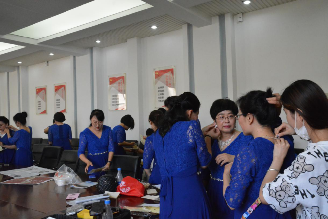 老师们齐心协力,用一遍遍地练习换来了演出时的完美展现。比赛当天上午,老师们紧锣密鼓的化妆、对词,夏日的高温没有阻挡他们的热情,老师们抓住每一点空余时间排练,期待在舞台上留下最美瞬间。