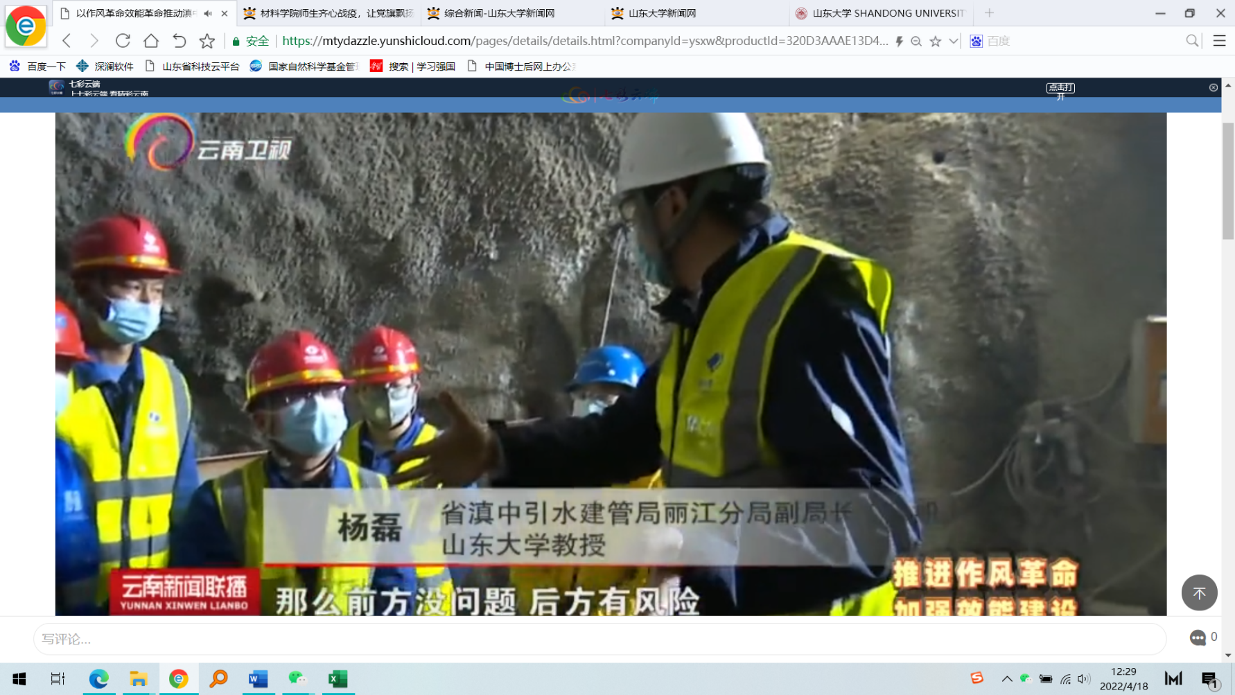在新疆某引水工程现场的师生也做到了防疫科研两手抓,在符合防疫要求的前提下,全力以赴地攻克工地现场的技术难题。通过线上视频会议等方式,与在校师生积极讨论,梳理科研思路,积极推进校外科研合作与学术交流。自疫情爆发以来,该项目施工一直面临人员短缺、疫情管控难等诸多挑战。但支部成员克服万难,发扬“特别能吃苦、特别能战斗”的作风,一人身兼多角色,及时查明了隧洞前方涌水通道的位置和规模,为隧洞安全施工提供了技术支撑。