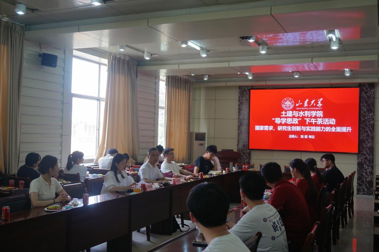 于千佛山校区水利楼世茂讲堂举行 “导学思政下午茶”之“面向国家需求,研究生创新与实践能力的全面提升”活动。学院党委书记刘斌出席并讲话,活动由姜海鹰主持,40余名研究生参与。