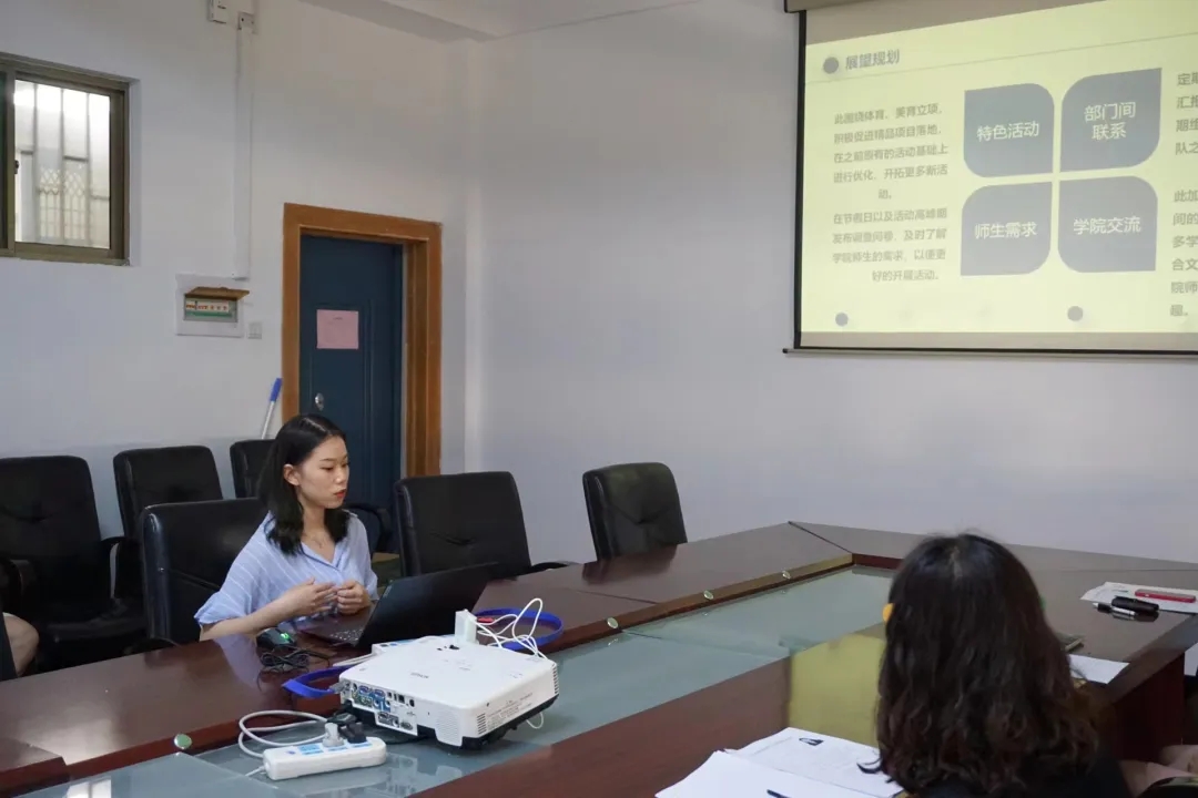 首先,吕泊宁对今天的会议内容做出了安排,对候选人的答辩顺序和换届要求做出了补充。随后,研会换届选举的候选人答辩环节。七位候选人按顺序进行竞职答辩,本次竞职分为演讲和答辩两个环节。竞职者们分别从自我介绍、自身优势、岗位认知和工作计划与展望等方面结合PPT展开演讲。大家侃侃而谈,对之前参与院校活动的收获进行了概括和总结,详谈了各自在研会等组织部门工作的感悟,分别从自己的实际工作经验出发,提出了对各自部门的工作想法和计划,并对研会的下一步发展作出了展望。随后,各竞职选者分别对评委提出的具有针对性的问题进行了答辩。答辩后,评委们根据选手的工作经验、现场答辩发挥和平时工作综合表现等方面对候选人进行评分,确定候选人名单。最后,姜海鹰对上一届研究生会的工作表示肯定和感谢,并希望新一届研会传承上一届的优良传统,团结一心做好本职工作,继续为学院学生工作贡献自己的力量。