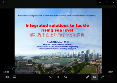 副院长毛德强教授、南洋理工大学土木与环境工程学院院长楚剑教授致辞。开幕式结束后,由南洋理工大学的楚剑教授、河海大学的鲁春辉教授、中国电建集团华东勘测设计研究院有限公司的沈侃敏高工、加拿大国家科学研究院的马冬玲教授、西安理工大学的侯精明教授作大会主旨报告,内容涉及水科学相关的前沿研究领域,引起了与会代表们的热烈讨论和积极反响。