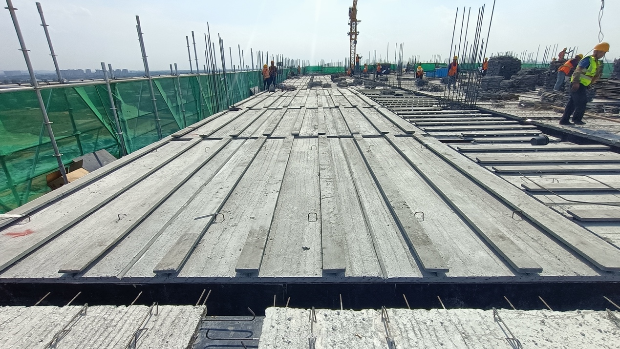 • 有效利用混凝土上翼缘在施工阶段受压,整体抗弯刚度大,抗裂性能优,在3.9m跨度内可实现施工阶段免支撑,在大跨度时可实现少支撑;