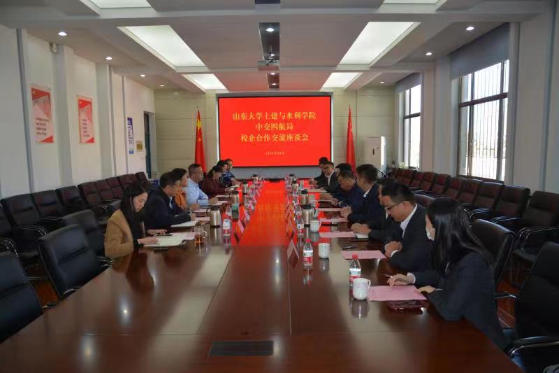 王磊表达了对与我院合作的高度重视,他介绍了中交四航局的发展历史、企业战略、产业布局及发展前景,认为中交四航局和我院在人才培养、科研合作等方面具有良好的合作基础,今后具有广阔的合作前景。他表示,中交四航局将继续支持与我院的全面战略合作,本着优势互补、互利共赢的原则,在科学研究、人才培养、成果转化等方面深入合作,将企业的资源优势、环境优势和高校的科研优势、人才优势更加紧密地结合起来,发挥集聚创新效应,促进企业与学院高质量发展,推动校企合作取得更多成果。四航局一公司纪委书记苏铁忠及四航局下属分公司人员就人才引进,人才联合培养,实习实践基地建设、捐资助学等方面合作模式进行了深入探讨交流。