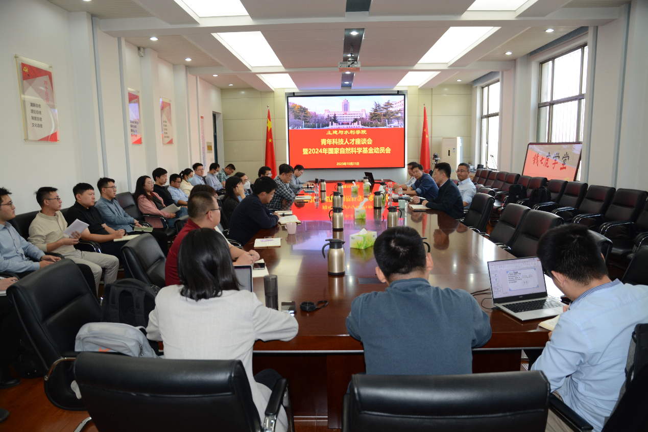 早动员、早组织、早准备,为切实做好2024年度国家自然科学基金申报工作,以有组织科研进一步促进学院基础研究提质增效。我院于10月31日上午在水利楼第一会议室召开青年科技人才座谈会暨2024年国家自然科学基金动员会。学院张庆松院长、刘斌书记出席会议,全院45岁以下中青年老师参会。会议由副院长毛德强主持。