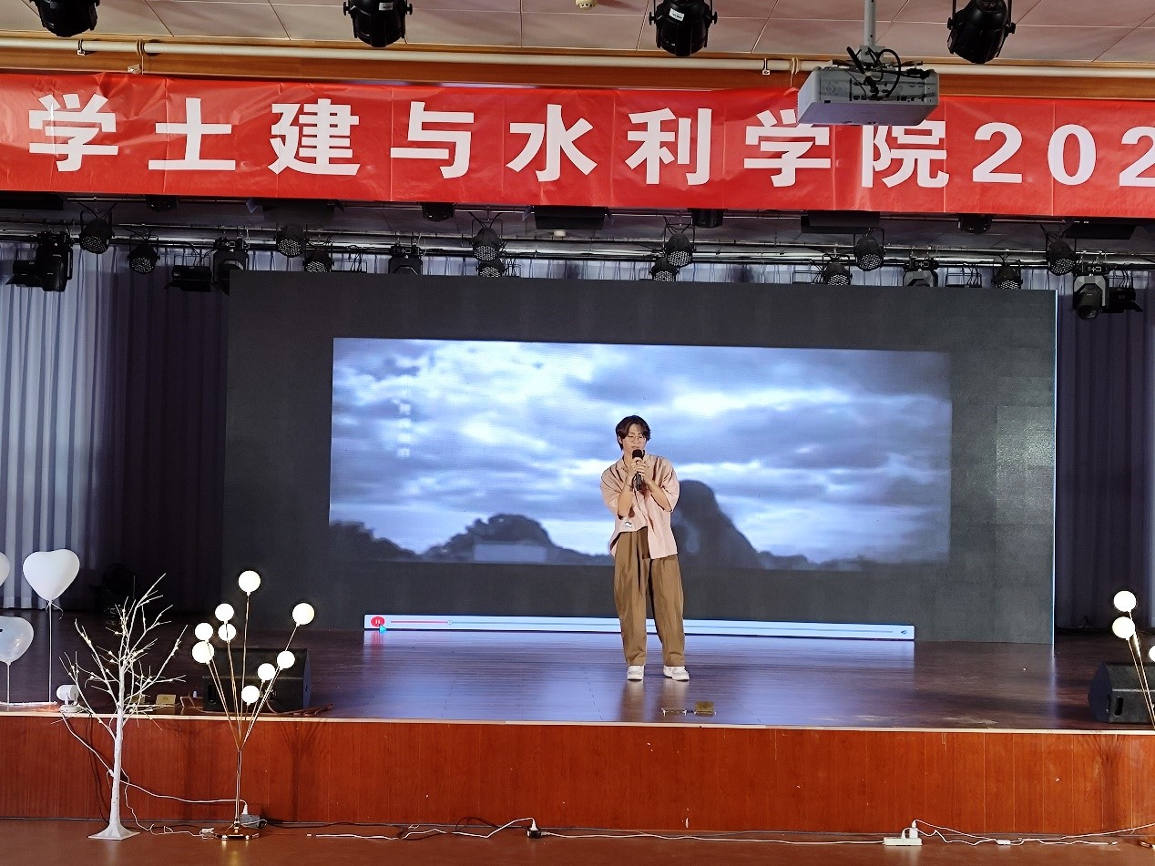 开场舞《DASH》,拉开了毕业晚会的序幕。《如果可以》《第几个一百天》《一个人的远方》,唱出了离别在即的伤感;李羽翔、尹聪演唱的《奢香夫人》,又为现场增添了几分欢乐;辅导员和学生共同献唱《朋友》,将现场气氛推向高潮。当毕业晚会遇上六一儿童节,歌曲《快乐女孩》《离开地球表面》《丑》,节奏欢快,冲淡了毕业的离愁;低年级学生倾情献唱《房间》《我会等》《一千年以后》,用歌声为学长学姐送上真挚的祝福。杨洁自弹自唱《安河桥》,唱出了毕业生的心声,赢得全场热烈掌声。