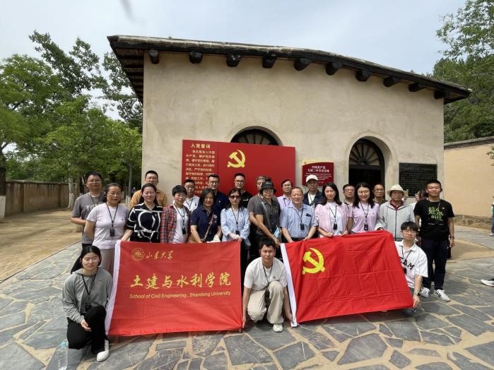 水工党支部组织水利系师生与南水北调山东干线公司行政法务部党支部、技术委党支部、济南局党支部联合开展“以学铸魂 对党忠诚 守护国之重器”主题党日活动和毕业实习活动,教育引导毕业生党员深刻领悟“两个确立”的决定性意义,更加自觉增强“四个意识”、坚定“四个自信”、做到“两个维护”,坚定理想信念、树立党员形象,主动担当作为。