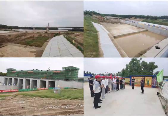 最后,同学们来到本次实习行程的第八和第九站——尚在建设中的位山引黄闸和陶城铺闸,在现场人员的详细介绍和引领参观,同学们了解到近年来由于黄河下游河道河床持续冲刷下切,相同流量下河道水位降低,对引黄涵闸引水能力产生了不利影响,这也是两闸纳入黄河下游引黄涵闸改建工程的原因。建成后位山引黄闸和陶城铺闸将担负着聊城境内农业灌溉和补充地下水资源的任务,并为境内工业、生活、生态用水提供重要保障。