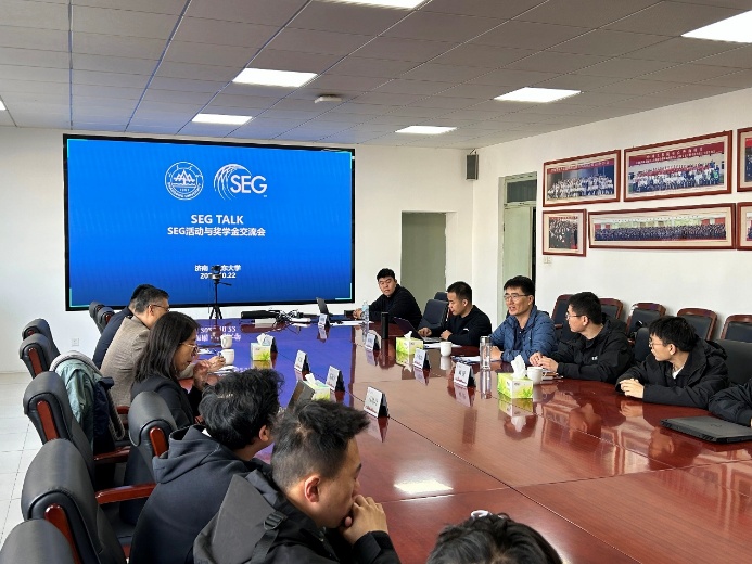 千佛山校区成功举行。SEG奖学金委员会委员、雪佛龙(Chevron)石油公司技术中心地球物理专家张凯博士、SEG中国办公室吴敬宇女士和吕绪玲女士、中国石油集团东方地球物理公司研究院专家丁成震担任活动嘉宾。交流会由工程软件系卢绪山副研究员主持。