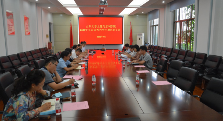 领导和各系教师代表在千佛山校区水利楼第一会议室与来自全国各高校的优秀学子一起参加了2020年度优秀大学生暑期夏令营。受疫情影响,营员们并没有来到现场,本次活动在腾讯会议平台进行。开营仪式由学院副院长张强勇主持,胡岩书记、辛帅副书记、王培军副院长、韩勃副院长以及各系系主任、书记等出席了活动。