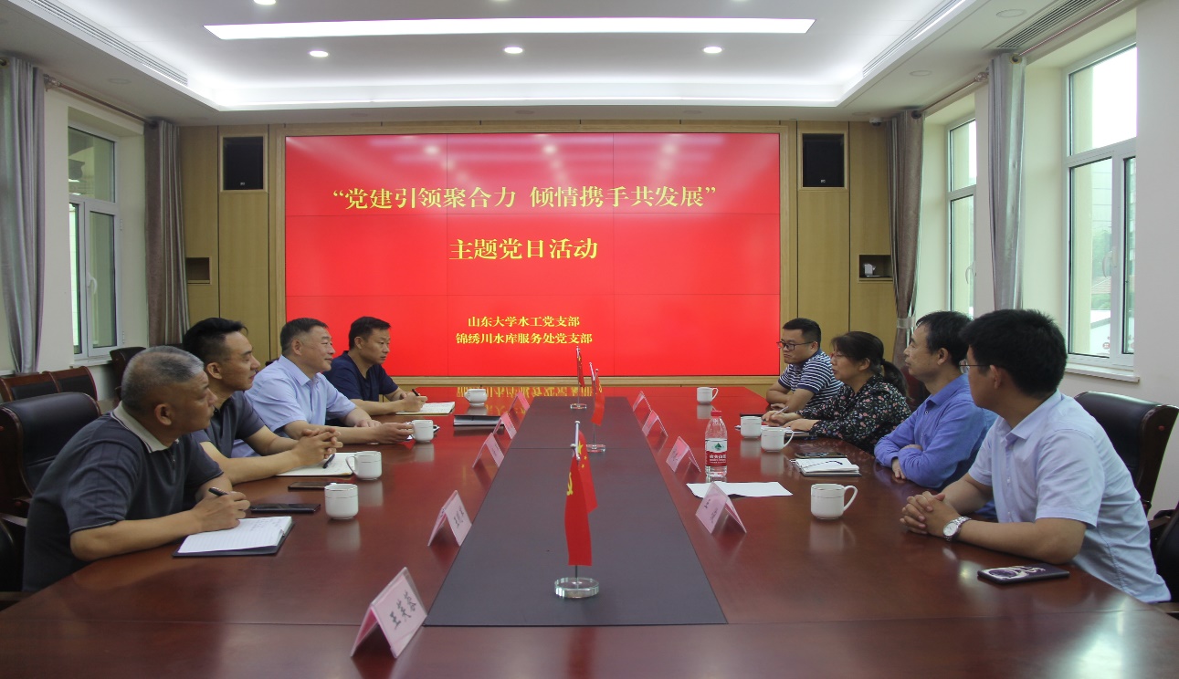 随后,水工党支部与锦绣川水库服务处党支部联合开展主题党日座谈会。座谈会上,锦绣川水库服务处党支部吴深介绍了水库服务处的党建工作、水源地保护、工程建设等方面内容。水工党支部书记于翠松介绍了水工党支部在师资队伍,教学科研和人才培养等方面情况。接着,双方人员重点针对如何搭建党支部交流学习互动平台,进行支部共建,搭建吃瓜网