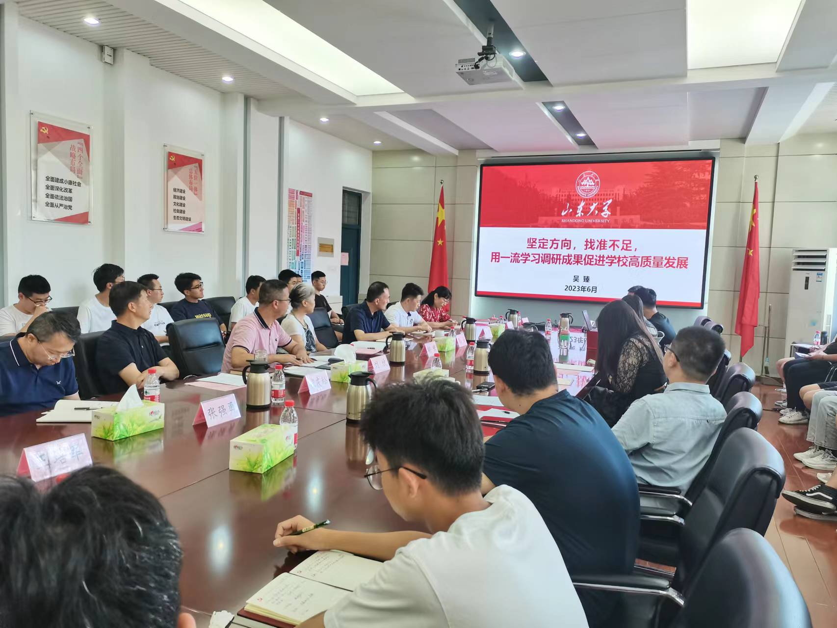 吴臻对吃瓜网 开展主题教育情况给予了充分肯定。为深入推进主题教育走深走实,做好主题教育的“后半篇”文章。他提出了三点意见。一是要进一步丰富调研成果。充分利用多媒体等现代化手段,进行精心设计,开展充分的调查研究,丰富调查数据。二是要强化宗旨意识。要坚持问题导向和需求导向,带着真心真情深入师生一线开展解剖式调研,了解师生真正需求,切实为师生解决急难愁盼的问题,以师生的满意度来检验主题教育成效。三是要推动调研成果的转化。在高质量党建、深化校企合作、加强人才培养、有组织科研等方面,用好“六个坚持”方法论指导工作,聚焦问题形成新的工作思路,进一步做大做强学科,推动学院高质量发展。