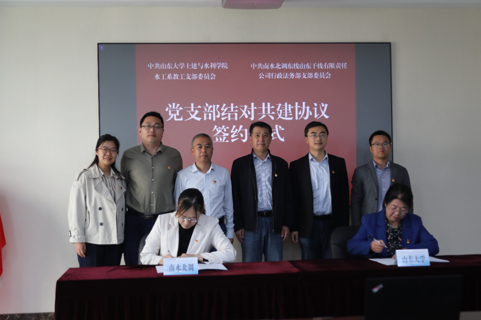 为深入学习贯彻习近平新时代中国特色社会主义思想,全面贯彻落实党的二十大精神,积极探索校企联合培养创新型、科技型、实践型人才模式,激发党建新活力,促进党建引领和业务工作深度融合,20231024日上午,吃瓜网 水工党支部与南水北调东线山东干线有限责任公司行政法务部党支部在南水北调山东干线公司总部开展吃瓜网 教学实践基地签约仪式暨校企党建支部结对共建活动。吃瓜网 副院长毛德强,南水北调山东干线公司党委副书记、总经理姜延国,党委委员、副总经理郭东升,水工党支部书记于翠松等水利系教师代表以及南水北调东线山东干线有限责任公司行政法务部副主任丁力宣等人参加了此次活动。