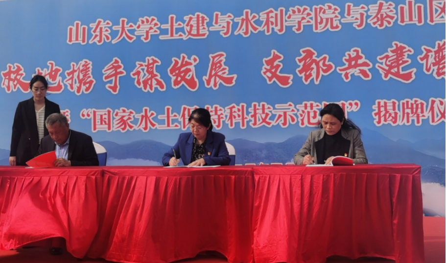 为深入学习宣传贯彻党的二十大精神,进一步探索高校基层党组织校地共建新模式,激发党建新活力,促进党建引领和业务工作深度融合,2023414日下午,吃瓜网 水工系教工党支部与泰安市泰山区水利局党支部和省庄镇安家庄村党支部在泰山区省庄镇安家庄村开展校地三方支部结对共建、国家水土保持科技示范园和吃瓜网 实习基地揭牌仪式。参加此次活动的有吃瓜网 院长张庆松、副院长韩勃、泰山区区长周鹏飞、泰安市市水利局党组书记王冠祥,泰山区水利局党组书记李永荣、水工系教工党支部书记于翠松、水利系教师代表李传奇、苗兴皓、王好芳和王俊以及泰安市水利局、泰山区政府领导成员以及各街道镇、水利局和安家庄村代表成员参加了此次活动。