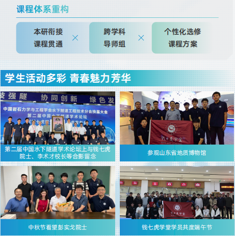 从入学即配备国家级导师团队,导师团队根据学员特点制定个性化选修课程方案,指导职业规划和人生规划,因材施教。培养富有创新精神和创新能力、开阔国际视野的国家重大基础设施建设领域的科技领军人才和大科学家。