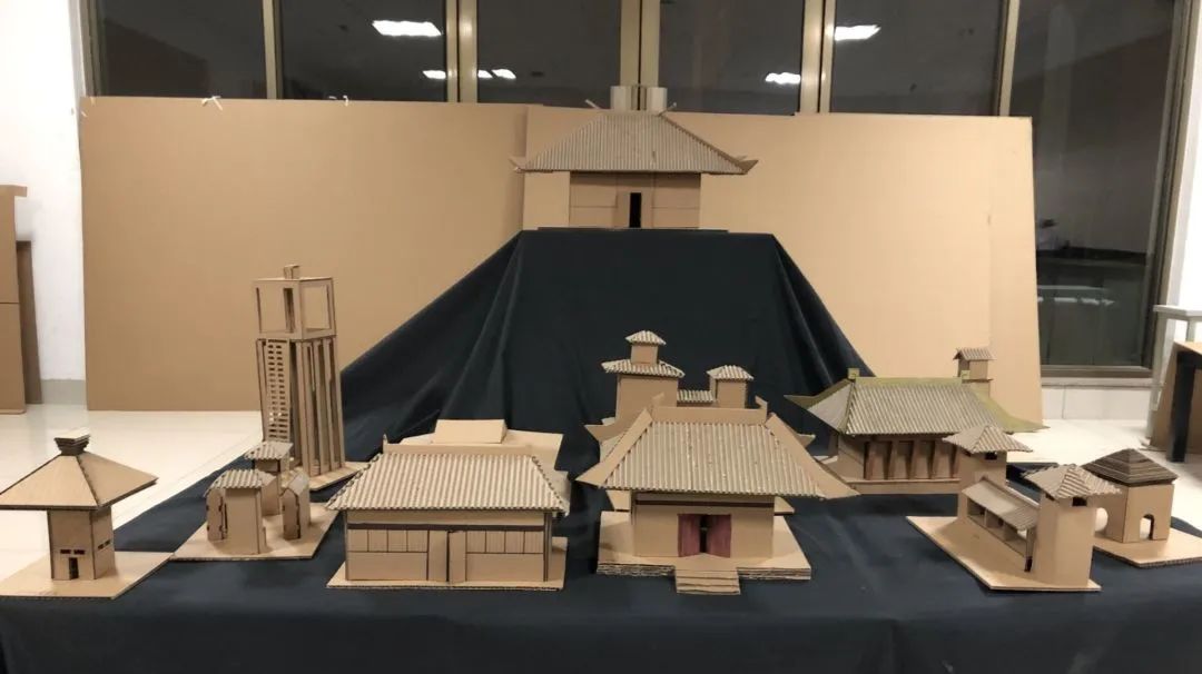 半月以来,建筑学的志愿者们从设计模型到模型制作,从外观到细部,尽力用瓦楞纸和雪弗板这种有限的材料还原建筑的本色。歇山顶、斗拱、立柱、飞檐……既有构成建筑的一个个零件、也有一座座独栋的塔楼与殿堂。深耕专业态度,秉持志愿精神,志愿者们态度认真、奉献了大量的时间,展示了自己的专业能力和态度,更是体现了作为志愿者努力为人服务的精神面貌。