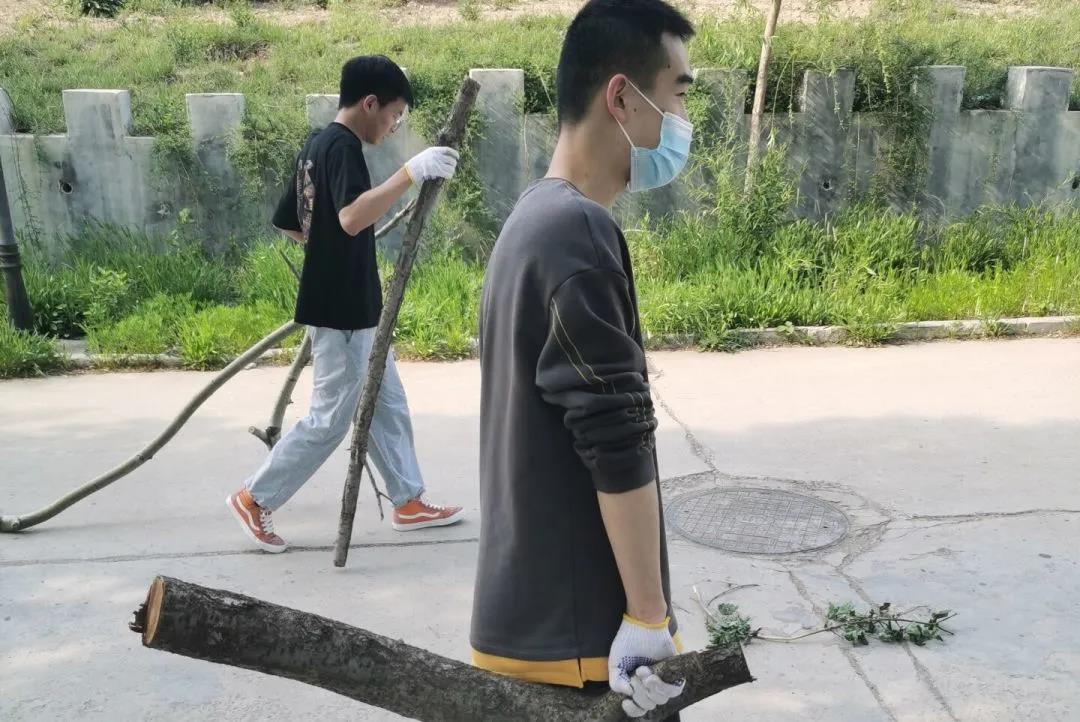 运输树苗的任务分为三个阶段:运送粗树干、运送带有茂密树叶的树苗、运输树桩和细直树苗。志愿者在进行了简单的分组协调之后,开始有条不紊的运输树木。虽然运输起点与心理基地的距离较小,但是沉重的树苗、树干以及粗壮的树桩,给志愿者带来了不小的挑战。