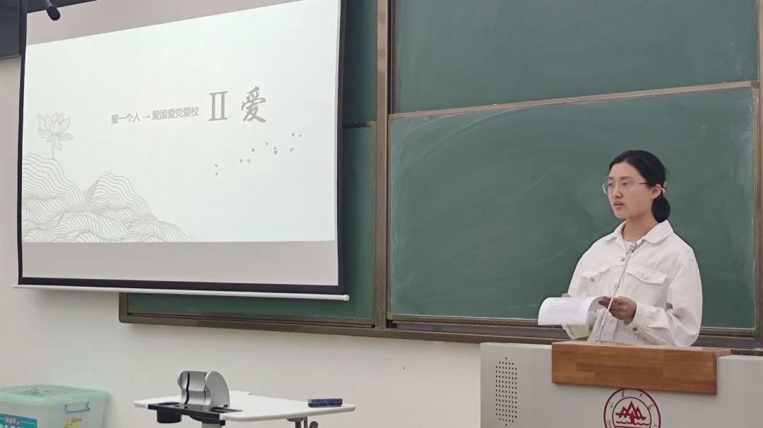 5月16日晚,第二次活动于教学楼3407举行,首先汤昊天以党史为主题,他详细介绍了党史进程,表示“欲知大道,必先为史”,在党的百年历程中汲取前进的智慧和力量,充分用好山大红色资源切实感受百年艰辛历程和巨大变化。接着胡耀宇以“回眸抗战,引领前行”为主题,他结合党史,讲述抗战故事,“愿以寸心寄华夏,且将岁月赠山河”。第三位同学宋金诺由爱引入,她从党史中得出爱的感悟,并引申至爱与奋斗的家国深情之上。第四位同学施淑垚向我们介绍了中国刺绣,并由自身经历感受呼吁大家走进刺绣,拥抱刺绣。第五位同学王锦鹏聚焦时代精神引领,结合历史向我们讲述了抗美援朝精神。