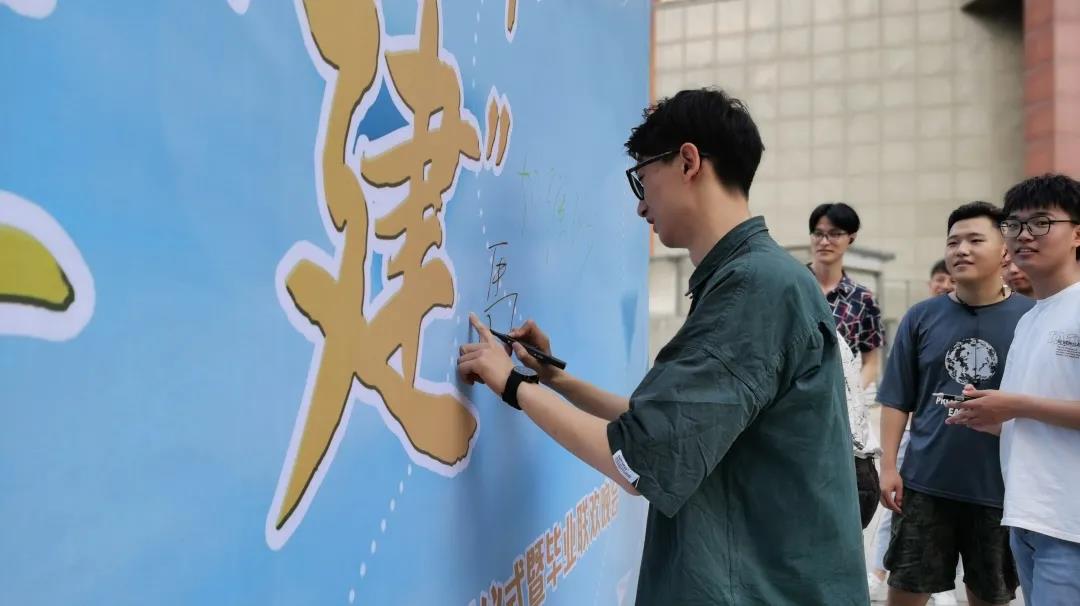 晚会前,全体毕业生在签名墙上签名留念,晚会中还穿插了缤纷多彩的小游戏,老师与同学们互动,其乐融融。