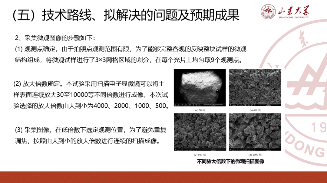 山东高速集团工程技术中心电子扫描显微镜实验室的对接情况,并鼓励团队成员突破传统创业领域与产品限制,强化新知识、新技术、新工艺、新方法应用,提高产品科技含量,努力尝试将社会实践研发成果转化为商业产品,如性能更加优良的改良型黄土。