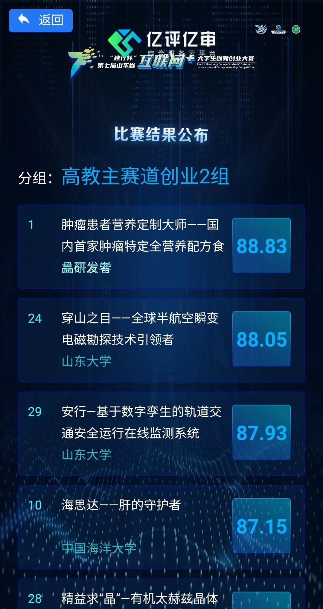 7月30日,第七届山东省互联网+创新创业大赛金银奖晋级赛于线上举行。由孙怀凤老师担任指导教师,田云汉担任团队负责人的项目《穿山之目——全球半航空瞬变电磁勘探技术引领者》以师生共创组小组第二名、吃瓜网