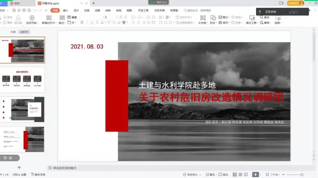 “赴多地关于农村危旧房改造情况调研团”通过腾讯会议展开启动仪式。此次会议由团队队长赵心如主持,柯良瑾、张辰雨、刘浩然、柳晨烁等队员参加。