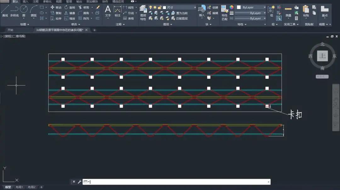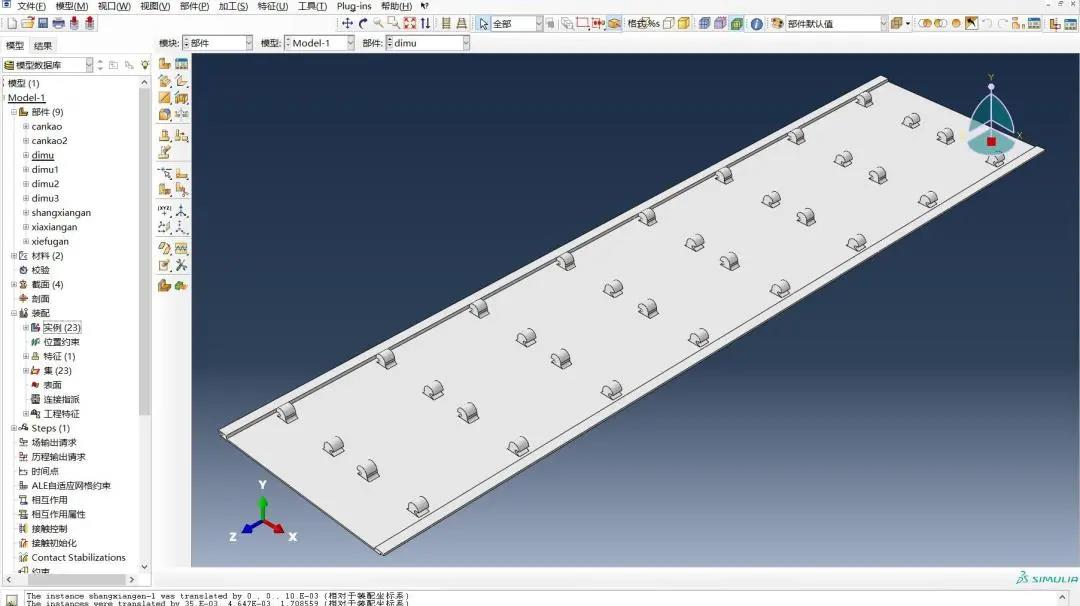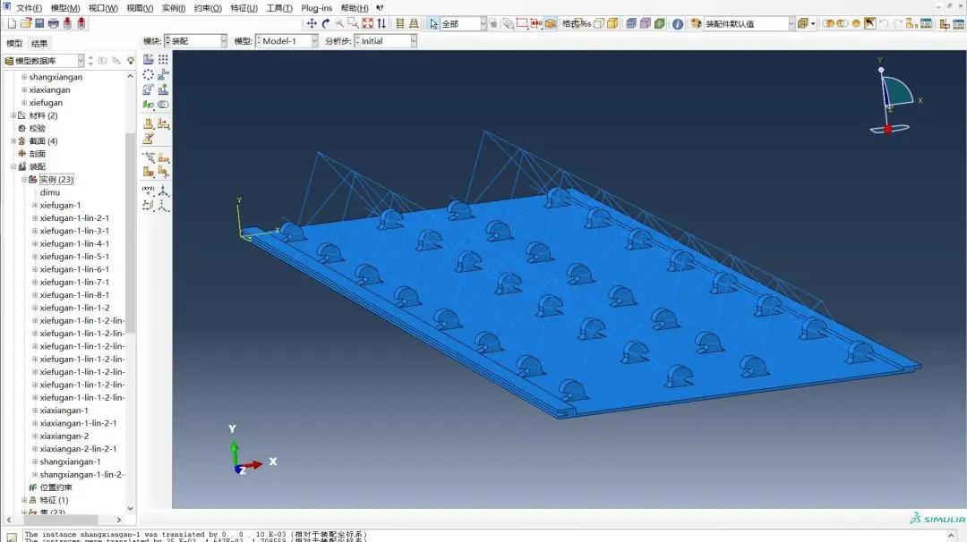 陈博文根据其他队员绘制的钢筋桁架的平面图在AutoCAD中绘制了桁架的三维图形,然后分上弦杆、下弦杆、斜腹杆导入ABAQUS中并进行材料设置、截面设置及其装配,得到桁架的三维模型。
