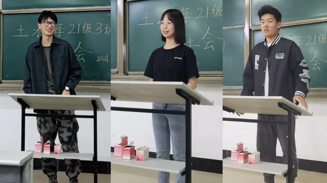 在新生自我介绍环节结束后,水利系高年级代表分享了自己的大学经历,向新生们提出保持勤奋好学的良好习惯、尽早规划职业发展、培养家国情怀等诸多干货建议。