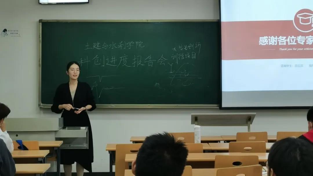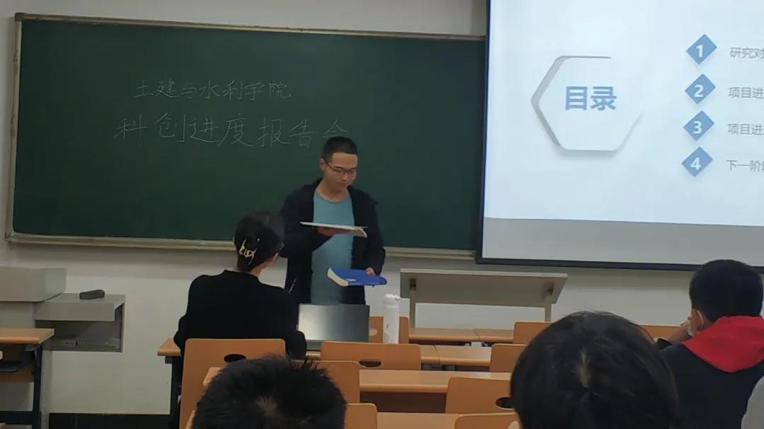 于教学楼1402召开科创进度报告会。本次报告会由大学生科创立项团队进行汇报,本科生辅导员何玥出席并担任评委,部分2021级学生作为观众参与。