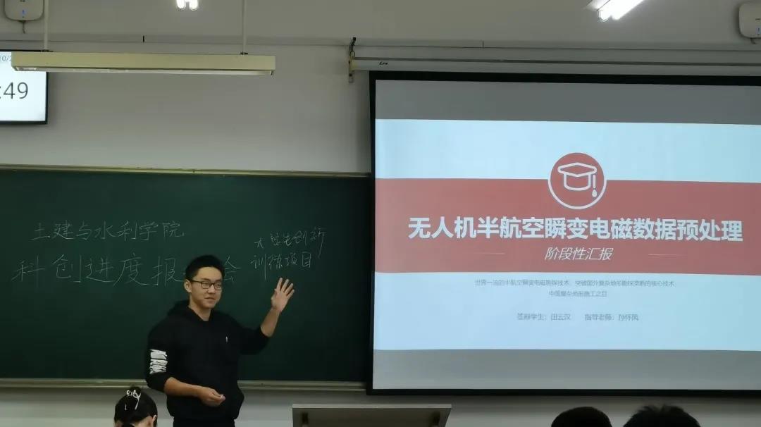 科创团队研究的主题丰富多样,但都对科研充满热情,有着严谨认真的科研态度。张智棋团队介绍了科研项目的流程,明确了接下来的研究方向,并对何玥提出的有关研究黄土湿陷性的研究目的和预期成果进行进一步阐述;阎相君作为陈博文团队的代表,生动地展示了现浇式楼板施工方式,并介绍了项目进展情况和科创团队科研的具体经历;魏方晨在交流中寄语新生,“我们多数人以往从未想过钢管的结构是怎么样的,但正是科研,要求我们去探索观察我们从未了解的事情,刷新对世界的认识。”不论是方雅欣讲述的硬核的学习经历,还是田云汉幽默诙谐的故事分享,都完美地展现了山大学子知行合一、实事求是的科研态度。在提问交流环节,何玥进一步了解项目内容,帮助报告人明确研究方向并提出建议。