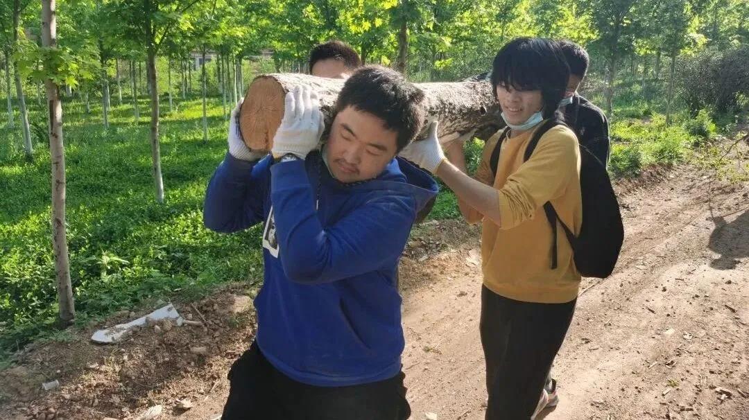 劳育主题志愿活动再次开展。志愿者们戴上手套,撸起袖子,将一根根树干搬运到心理中心。为校园美化作一份贡献。