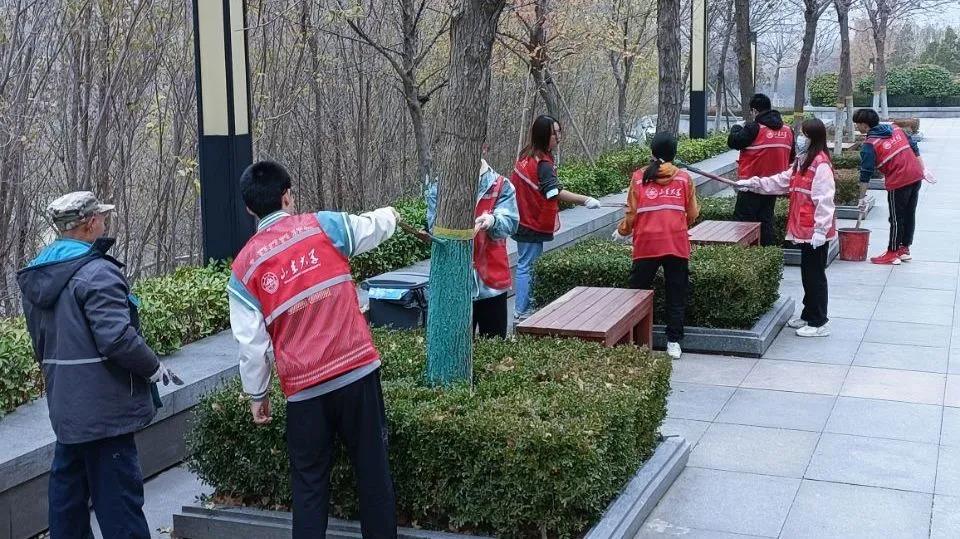 山风呼啸,树木也需要过冬的“外衣”。学院开展校园小树刷漆活动,带领志愿者为树干涂上过冬的“新衣”,帮助小树抵抗潮湿、寒冷及虫类啃噬。志愿者们在亲近自然、保护树木中增进了彼此之间的感情,提高了参与志愿活动的热情。