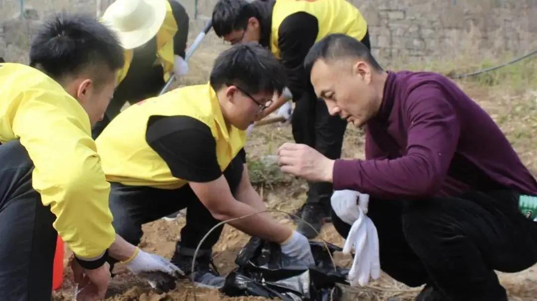 植树节劳育志愿开展。学院辅导员们带领志愿者在学校后山垦殖荒地,植树造林。以植树为媒,感受劳动的力量。