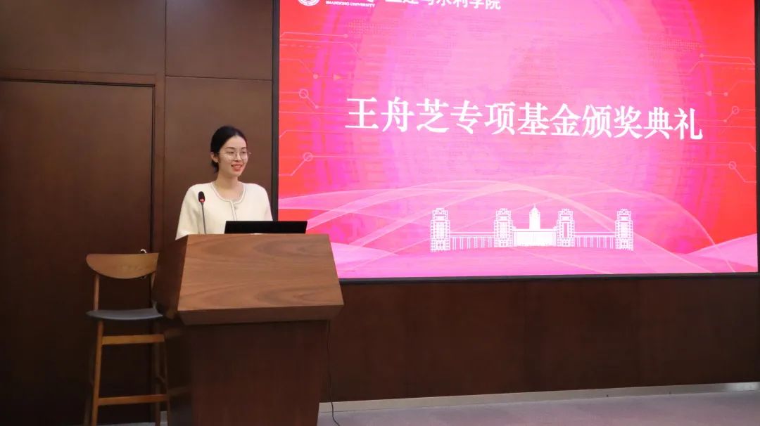 胡岩在致辞中对王舟芝先生设立专项基金捐资助学表示感谢,她表示近年来学院深入落实立德树人根本任务,扎实推进“三全育人”综合改革,助力学生全面发展。学院历来重视榜样的培育和选树,王舟芝单项奖学金和大学生讲堂获奖者正是这其中的优秀代表,她希望同学们以优秀学子为榜样,胸怀远大理想、常怀感恩之心,积极响应时代号召,争做德智体美劳全面发展的时代新人。
