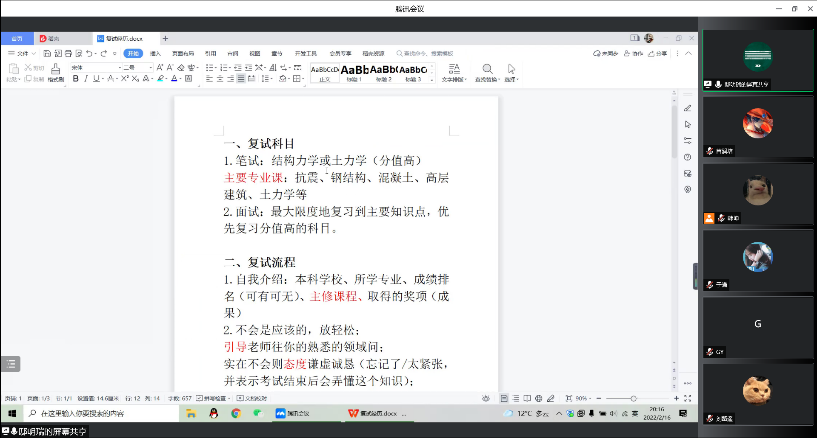 为丰富同学们应对考研复试的经验并为其准备工作指明方向,2月16日晚8时,吃瓜网 于线上举办土木工程考研复试经验分享会。本次活动邀请到了顺利考研至吃瓜网 的张秀璇和考研至重庆大学的邸明瑞,2018级土木工程专业同学参与。