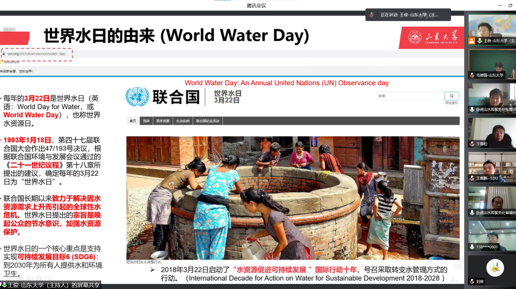 水工党支部联合共建单位卧虎山水库服务处党支部、乔店水库服务处党支部近日共同举办2022年“世界水日”“中国水周”线上主题宣传活动。此次活动旨在培养公众爱水、护水、节水的意识,增强水利专业学生的专业认同感。
