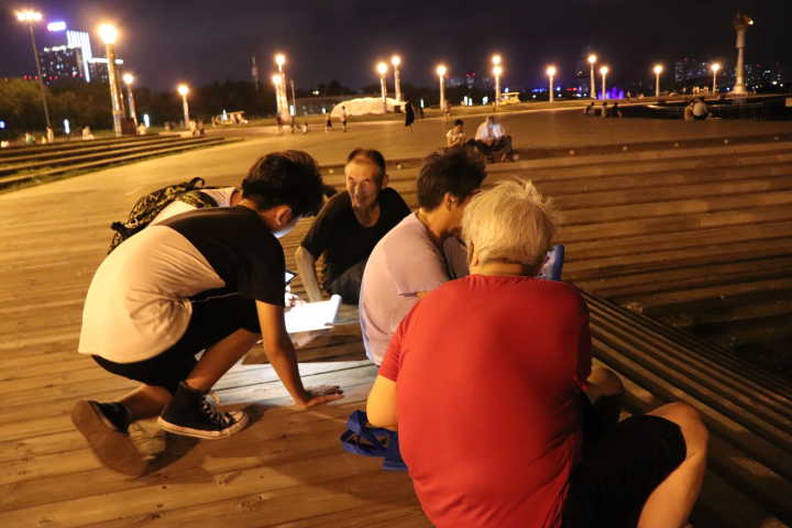 本次的问卷调查活动是上次万象汇问卷活动的继续,但本次问卷调查活动的主要群体是前来休息的本地居民。活动过程中,队员们采访到了一对在日照本地居住了几十年的夫妻。这对夫妻在日照生活了50多年,他们见证了日照几十年来的经济发展以及环境改变。他们告诉队员们,从30年前日照建设的第一个海水浴场——石臼海水浴场以来,日照的旅游业取得飞速发展。随后,政府相继开设了第二海水浴场、山海天海水浴场等三个海水浴场。多个海水浴场的开设在给日照市带来经济发展的同时,也使得日照市的生态环境不如以前。好在政府部门及时发现问题所在,并采取了一系列相应措施来保护治理生态环境。从这对夫妻的言谈中,队员们可以听出这对夫妻对日照经济发展迅速和环境保护得当的自豪感,也能感受到政府部门对环境保护的重视。