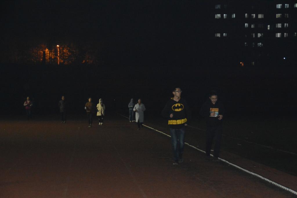 晚7点半,全体成员在操场门口集合,武成凤首先介绍了本次夜跑活动的具体安排及活动期间的注意事项。她鼓励同学们坚持参加夜跑,注重身体健康,做德、智、体、美全面发展的优秀大学生。据悉,夜跑活动将持续21天,设定每周为一个阶段,内容逐段升级,逐步提高同学们的体能素质。活动后期还将丰富形式,增加活动的趣味性。简单的准备活动结束后,夜跑准时开始。活动成员相继起跑加速,晚风袭来,带着阵阵凉意,但这并未降低同学们的积极性,大家热情高涨,夜幕下的风雨操场活力四射。随着活动的进行,跑道上渐渐传来喘息声,大家互相打气加油。任务完成后,同学们陆续放慢速度,两颊微红地走下跑道,大家纷纷表示这样的夜跑活动大大释放了学习压力,令人身心舒畅,许多同学还表示愿意长期坚持这项活动。武成凤对当天活动做出了总结,她指出,夜跑不仅仅是一项有助于身体健康的集体活动,也是一种增强支部凝聚力的有效形式。支部借此搭建平台,旨在促进党员之间、党员和积极分子之间的交流。最后,全体参与的同学合影留念,启动仪式暨首日夜跑活动圆满结束。