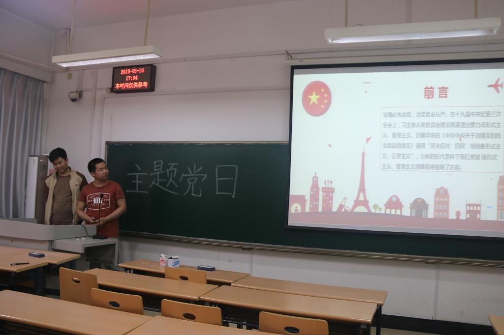 主讲人王欣灏和邱雨杭首先指出,政治建设是党的根本性建设,决定了党建设的效果和方向,因此加强党的政治建设,既十分重要,又非常必要。两位主讲人引用习近平总书记的话,通过全面而客观的分析表明了加强党的政治建设的现实针对性和紧迫性,并建议党支部成员要善于从政治上把握大局,严明党内纪律,坚守道德。主讲人刘洋和赵国浩则就破除“形式主义和官僚主义”的重要性和做法展开发言,通过分析形式主义和官僚主义的问题实质,指出二者不再是作风问题,而是严肃的政治问题,与党的政治、原则、立场背道而驰,由此提醒大家要谨防政治信仰淡化、政治领导虚化、政治能力弱化和政治生态恶化。刘洋和赵国浩还具体讲解了破除两种主义的途径,提出要从思想抓起、从重点拎起、从责任机制严起。