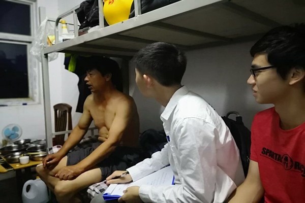 在与民工交谈中,团队了解到民工平常娱乐活动单一,主要消遣方式仅包括手机游戏、与家人通话、浏览新闻三个方面。究其原因,主要因为工人的工作时间长、工作强度高,没有多余的时间精力在下班后进行其它有趣的娱乐活动和发展个人的兴趣爱好。在长时间重复单调的劳动中,工人没有培养自己的学习意识,多年以来在同一岗位按部就班,以至于限制了他们个人的发展。工人表示,在夏季的高温工作环境下,从事外墙工作极易中暑,但公司拥有诸如发放藿香正气水等相应的防范措施,工人一般不会发生中暑症状。碰上雨天,部分如幕墙装饰等受影响的工程便停工,雨停下后,工作照旧。虽然工期会不可避免地延长,但工人的安全得到了充分的保障。近几年国家劳动部和社会保障部门特别重视建筑公司拖欠工资问题,甚至曾引起社会舆论广泛关注和报道。谈及拖欠工资问题,工人透露,这类现象仍然存在,但即将出台的建筑工人实名制和建筑公司抵押金制度,将从源头上消除拖欠工人工资现象,确保工人的血汗钱能按时发放。此外,团队成员还就工人们休假时长、宿舍环境、人际情况等与工人们进行了深入交流。