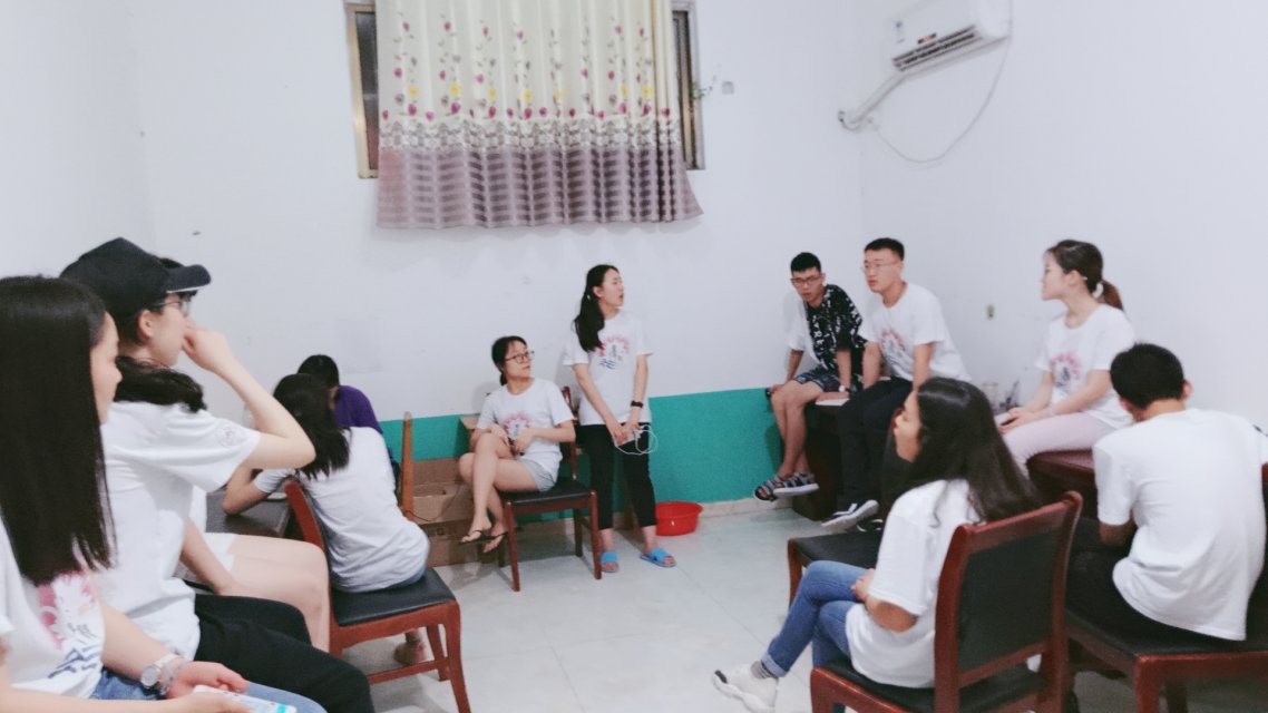 7月25晚8时,会议准时开始。首先,由每个人汇报自己的上课及生活情况,并由其他成员提出改进意见。回顾前十几天的支教生活,每一位成员就学生及课程提出自己的看法,不只关注学生课程,也关注学生心理及生活状况,发现教学问题,在最后的课程中进行改进,留下完美不留遗憾的支教回忆。其中六年级老师张璇发现英语水平层次不齐,英语水平普遍较低。在与学生相处过程中,语言是一个很大的问题,虽然学生会说普通话,但是交流中大部分是当地方言,交流有一点障碍。会议总结前半阶段的支教工作,后半阶段的支教计划及过程中出现的问题和改进措施。除此之外,联欢会已经进入准备阶段。各个年级节目已经开始确定,三年级由舞蹈恰恰,双节棍和合唱《童年》,各个年级基本有大合唱及个人节目,支教队成员打算唱一首吃瓜网