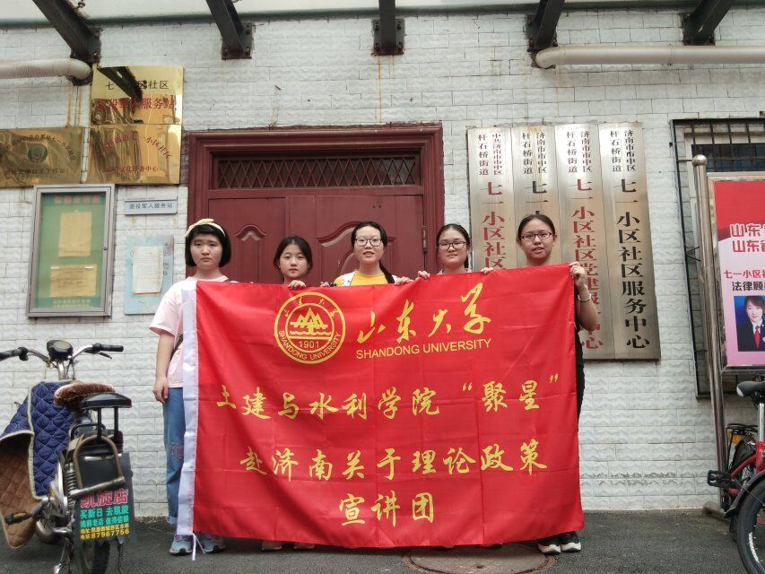 “聚星”暑期社会实践团队全体成员根据既定计划从兴隆山出发乘坐公交车赴济南市市中区杆石桥街道七一社区采访当地居民。