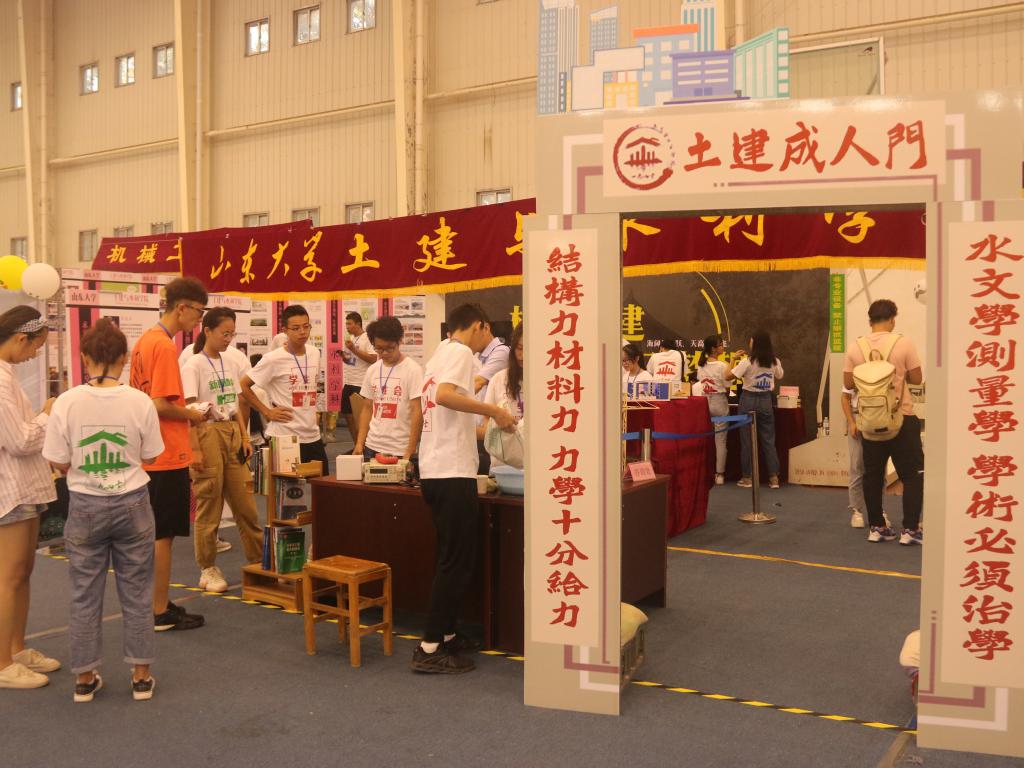 的各个特色专业。工作人员开设力学专业展台,向新生进行有趣实验展示,包括克拉尼图形演示、一根钢钉支持十根钢钉以及非牛顿流体等,另外,迎新场地摆放了结构设计大赛参赛作品、建筑系作业模型及作业图纸,使新生充分感受到了专业特色和文化底蕴,提高了他们的学习热情。活动照片栏将志愿服务大赛,篮球比赛等活动进行充分展示,向新生及家长展现了土建学子的青春活力和良好风貌。