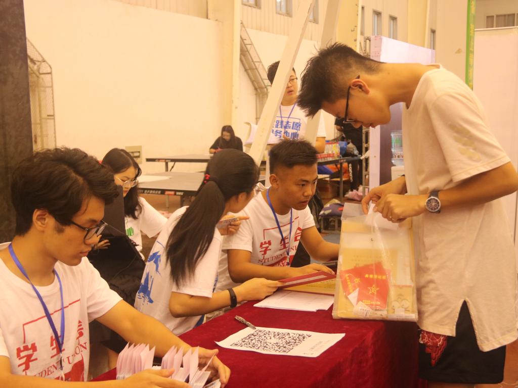 在迎新场地,志愿者热情及时的指导和帮助让新生体会到山大的友好和亲切。迎新现场分为报到区、展示区、休息区、合影区。报到区设置专人引导,学院不断优化报到流程、减少繁琐程序,为新生和家长提供高效便捷的服务,新生报名工作有序开展。